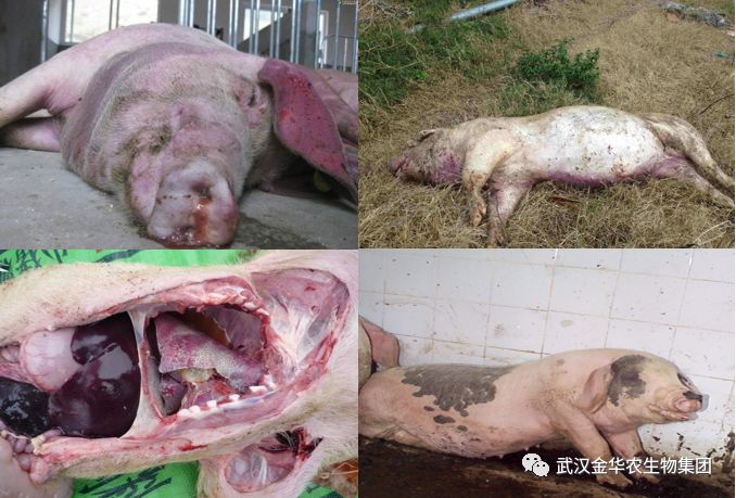 1、最急性型:感染開始時,一個或幾個豬群中1頭或幾頭豬突然發病,并可在無臨床癥狀情況下突然死亡,隨后疾病在敏感豬中傳播很快。病豬體溫高達41.5℃,精神委頓、不愿活動,厭食或廢食,并能出現短期腹瀉或嘔吐。