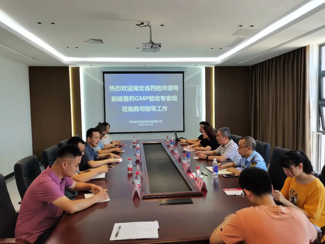 ?? ? ? 8月9日,國家農業農村部獸藥GMP驗收組專家、湖北省獸醫監察所副所長王建華、盧芳主任、鄂州市農業綜合執法支隊高級畜牧師李慶華前往武漢金華農生物科技有限公司考察,進行新版GMP預驗收指導,在全面了解企業概貌及參觀智能化生產新區后,專家領導一行與公司富勝董事長及企業市場部、行政部、質量部、生產部主要負責人在公司行政會議室進行了深入地交流。