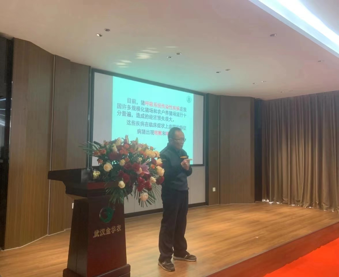 ? ? ? ?帶著市場問題求知探索:“藍耳、偽狂犬、鏈球菌、副豬嗜血桿菌、豬流行性感冒、豬瘟、豬肺疫、傳染性胸膜肺炎、附紅細胞體等均可導致豬只體溫升高、咳嗽喘氣,如何區分它的病因?怎樣對癥防控?”武漢金華農研發導師、華中農業大學動醫專家、博士生導師姚寶安教授,從《非洲豬瘟綜合防控技術》、《豬呼吸系統傳染性疾病的鑒別診斷》兩大主題為公司市場人員做專題培訓。作為豬病領域的權威專家,姚教授在理論與實踐方面均具有豐富的研究經驗,針對影響市場效益的主要問題,姚教授進行了詳細的講解與病案分析。學員們認真聆聽并記錄,講座互動環節,姚教授針對學員們提出的來自市場一線的各種專業技術問題進行了細致解答。