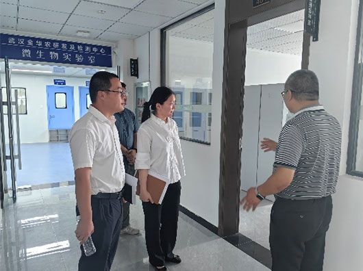 ? ? ? ?政府金融機(jī)構(gòu)劉處長、宋主任,高行長一行,前往我司項目基地考察,參觀了解微生物實驗室、國家GMP車間、質(zhì)量檢測中心、研發(fā)試驗中心建設(shè)情況,十分稱贊,并祝賀武漢金華農(nóng)企業(yè)快速發(fā)展壯大。公司運(yùn)營主管郭昌盛向領(lǐng)導(dǎo)一行介紹了公司在企業(yè)文化、技術(shù)體系、市場拓展、品牌建設(shè)等方面取得的成績。
