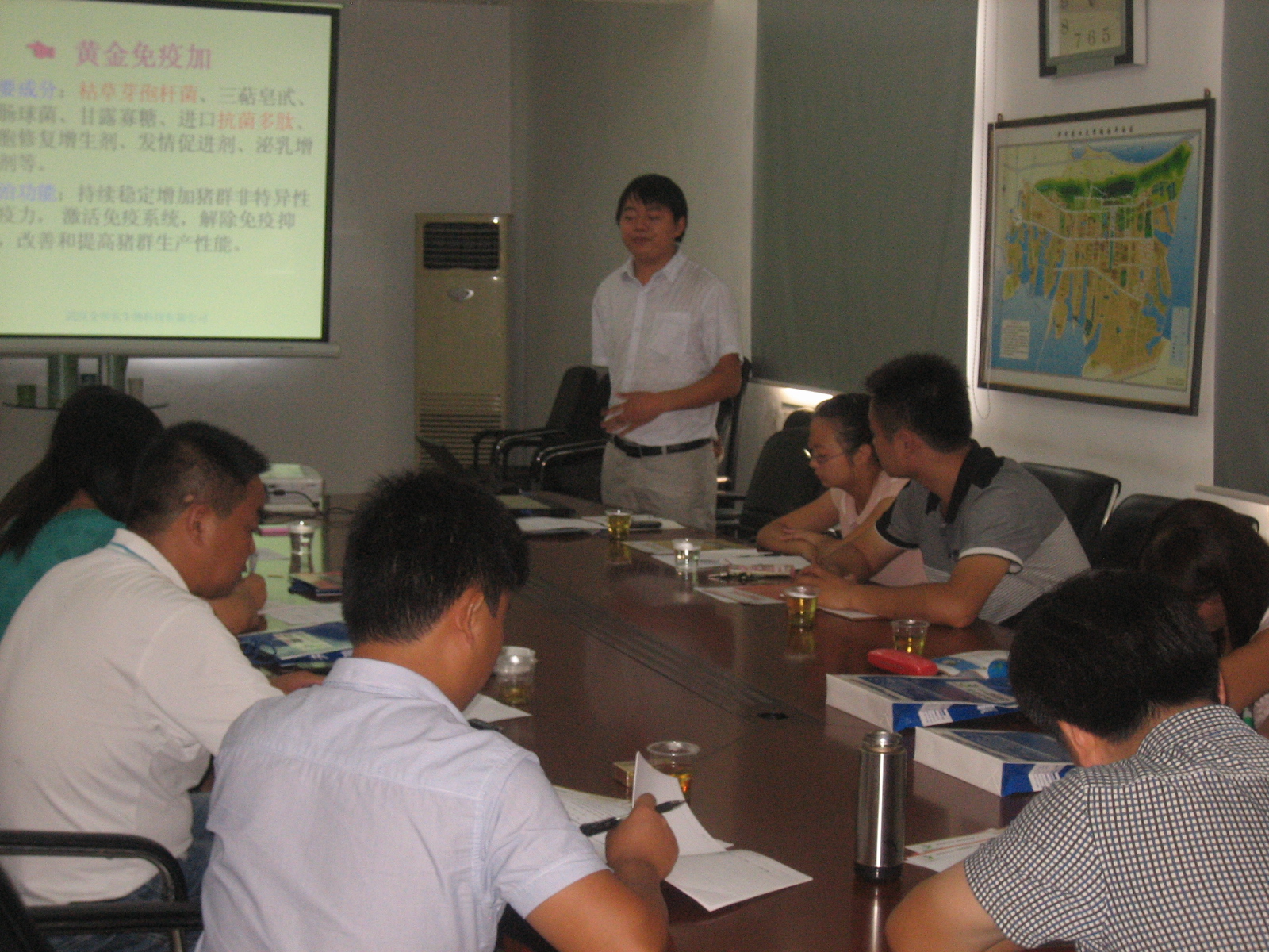 ? ? 會后,河南省區(qū)市場人員參觀了公司位于華中農(nóng)業(yè)大學(xué)科技園內(nèi)的獸藥GMP新車間和獸藥研發(fā)中心。通過這次會議交流和參觀學(xué)習(xí),大家都深受鼓舞,信心百倍,士氣高昂,團隊成員表態(tài),保證超額完成公司目標(biāo)任務(wù)。本次會議由公司徐總主持,參加會議的還有總經(jīng)理助理黃凡、質(zhì)量部郭主任、技術(shù)部董老師等同志。??????? ? ??