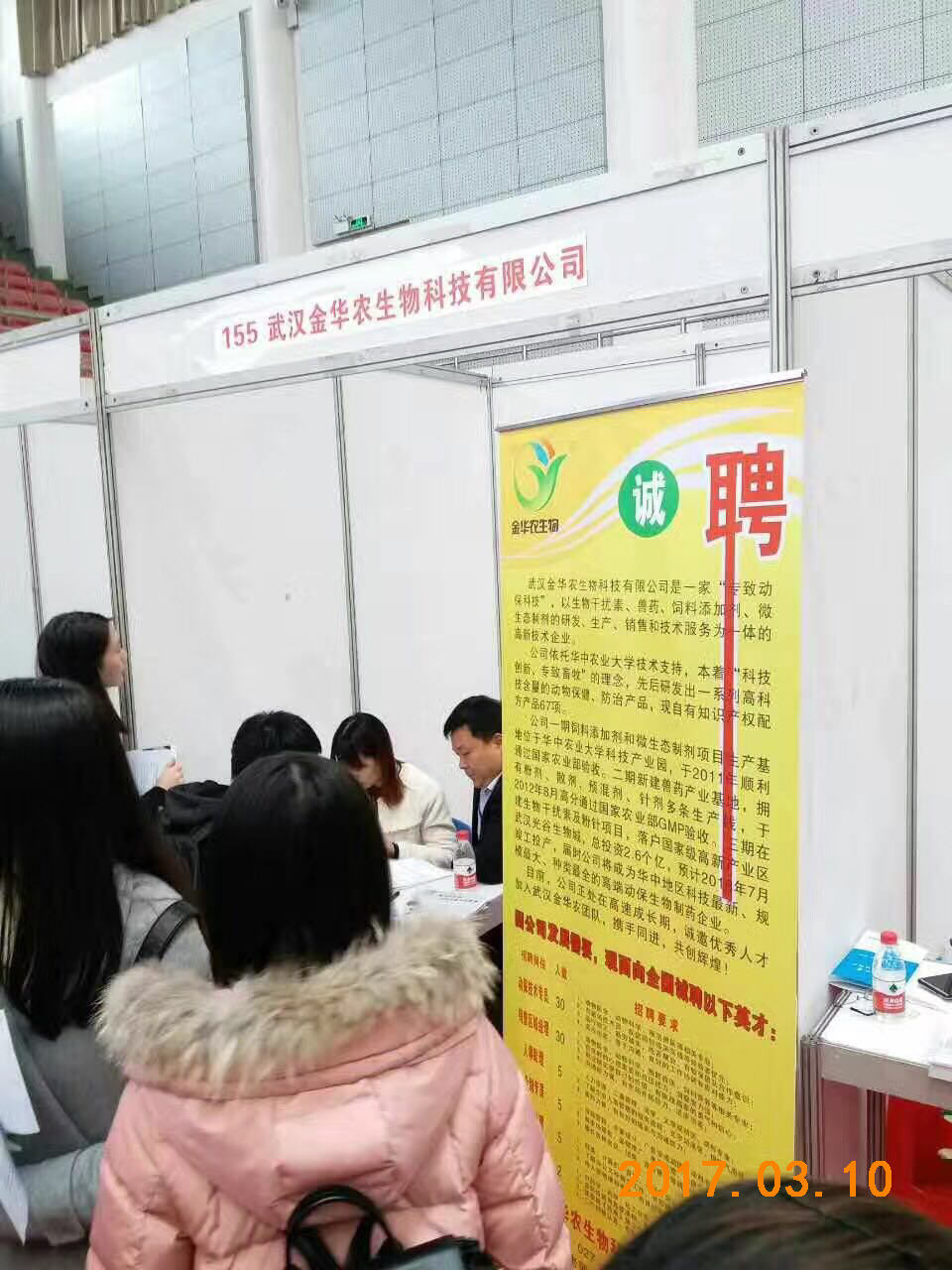 3月10日,武漢金華農生物應邀參加華中農業大學春季畢業生供需見面會。隨著公司規模進一步擴大,發展步伐進一步加快,原有規模不能滿足公司發展,增設部門和擴充人手勢在必行。武漢金華農提供的多個崗位受到華農學子的熱烈追捧,爭先恐后前來咨詢和面試,競聘各種崗位。經過現場面試和篩選,公司在本次招聘會上收獲人才頗豐!