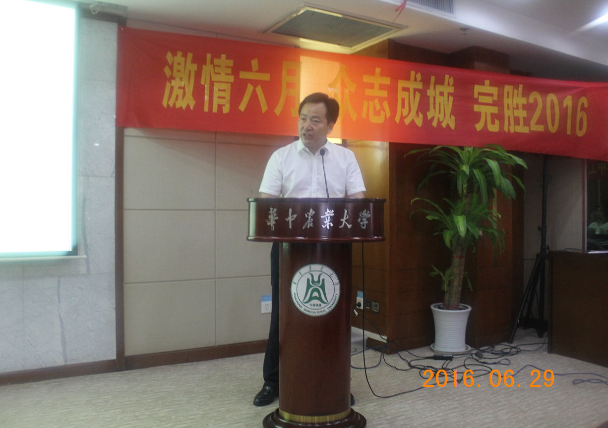 在這驕陽似火的的6月,我們相聚在華農獅子山,這個靈杰俊秀之地,我謹代表武漢金華農生物科技有限公司對你們的“回家”表示最熱烈的歡迎!代表公司向這半年以來奮勇拼搏在市場銷售一線的全體員工表示誠摯的問候!