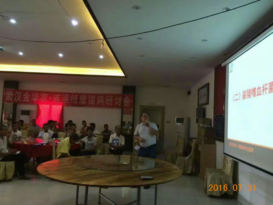 2016年7月12-31日,武漢金華農(nóng)生物科技有限公司在廣東全省境內(nèi)成功舉辦6場(chǎng)多形式豬病交流座談會(huì),其中在“揭陽(yáng)”、“遂溪”兩地成功召開(kāi)兩場(chǎng)規(guī)模化養(yǎng)殖場(chǎng)豬病研討會(huì)議。雖然天氣有些炎熱,但絲毫沒(méi)有阻擋廣大養(yǎng)殖戶(hù)來(lái)武漢金華農(nóng)會(huì)場(chǎng)聽(tīng)課學(xué)習(xí)的熱情,向華中農(nóng)業(yè)大學(xué)豬病專(zhuān)家咨詢(xún)交流的決心。公司7月廣東兩場(chǎng)豬病會(huì)議召開(kāi)十分成功,收到良好的效果,達(dá)到預(yù)期目的。