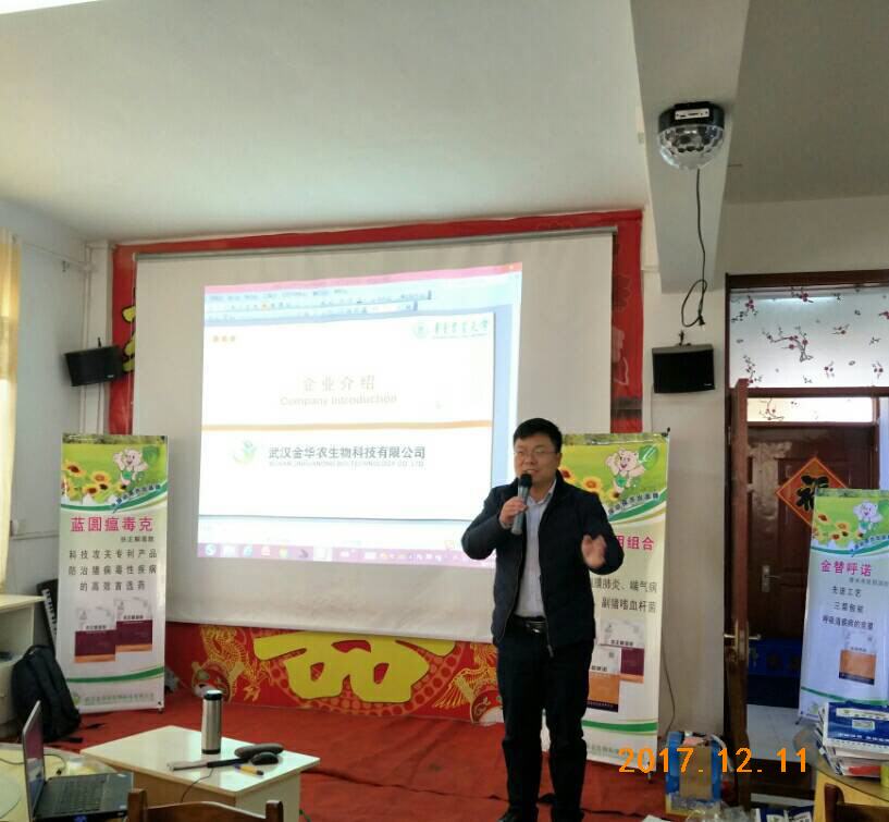 2017年12月11~12日,武漢金華農(nóng)生物“山東莒南冬季豬病防控與研討交流會”在山東臨沂地區(qū)勝利召開!公司領(lǐng)導(dǎo)徐巍副總經(jīng)理、技術(shù)部吳老師、大區(qū)負(fù)責(zé)人劉經(jīng)理參加本次會議,會議聽課豬場人數(shù)120多人,會議達(dá)到預(yù)期目的,豬病知識授課圓滿,養(yǎng)豬戶學(xué)習(xí)積極認(rèn)真。