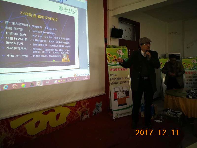 會議主題是以豬場冬季常見多發(fā)的“呼吸道疾病”深入分析與探討,專家教授對“藍(lán)耳呼吸道綜合癥”、“副豬嗜血桿菌病”、“傳染性胸膜肺炎”、“豬流感”、“支原體肺炎”等困擾養(yǎng)豬戶難題做詳細(xì)解答,怎么預(yù)防呼吸道?怎么治療呼吸道?如何防控繼發(fā)感染,以及急性心肌炎癥導(dǎo)致死亡?呼吸道經(jīng)典組方“金替呼諾+氟泰肺寧+華農(nóng)樂健”表現(xiàn)突出效果,受到在場的養(yǎng)豬戶的一直認(rèn)可和贊美!