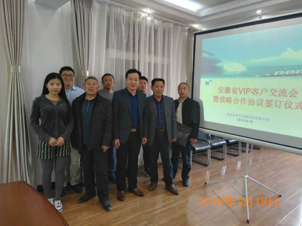 2018年4月17-18日,安徽省潁上縣經銷商VIP客戶李總、仆總一行5人,來到公司總部武漢進行為期2天的參觀考察活動,考察內容涵蓋:了解企業文化、培訓產品知識、熟悉生產工藝、參觀生產線。李總、仆總一行就近實地參觀了公司位于華中農業大學科技園內的生產工廠,宏觀框架參觀了解公司正在建設的“中國藥谷”智能化新工廠生產基地。