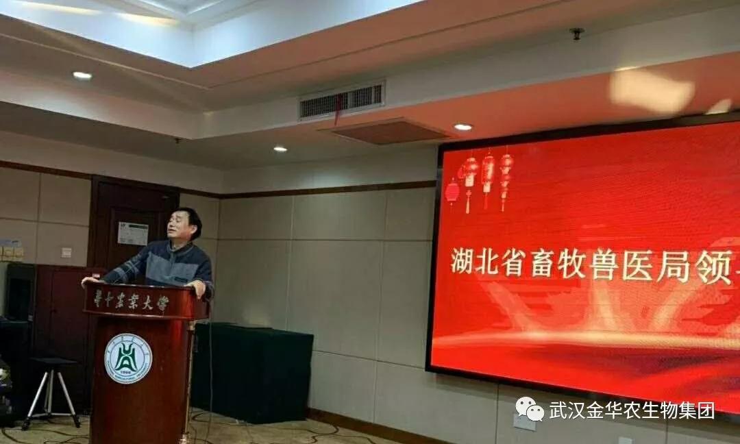 2019年1月22日,湖北省農業農村廳、湖北省畜牧獸醫局、湖北省獸藥監察所、湖北省動物保健品協會,聯合組織召開湖北省2018年動保企業家工作洽談會議,在武漢國際學術交流中心隆重召開,武漢金華農生物科技有限公司應邀出席參加本次會議。