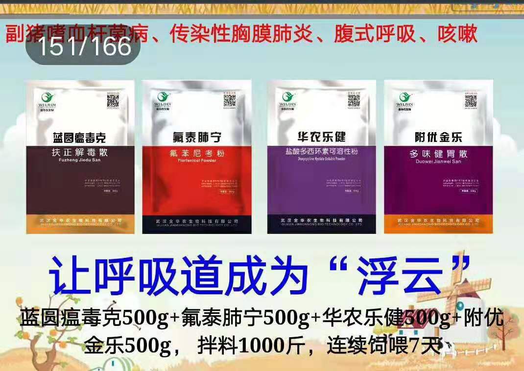 ? ?附優金樂1kg+華農樂健500g+弓球痢康500g+伊苯佳300g,拌料1000斤,連續飼喂7-10天,效果很好;