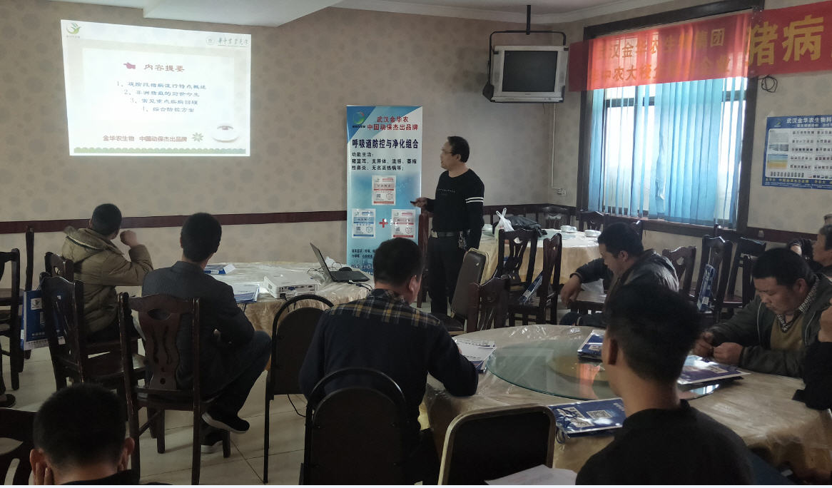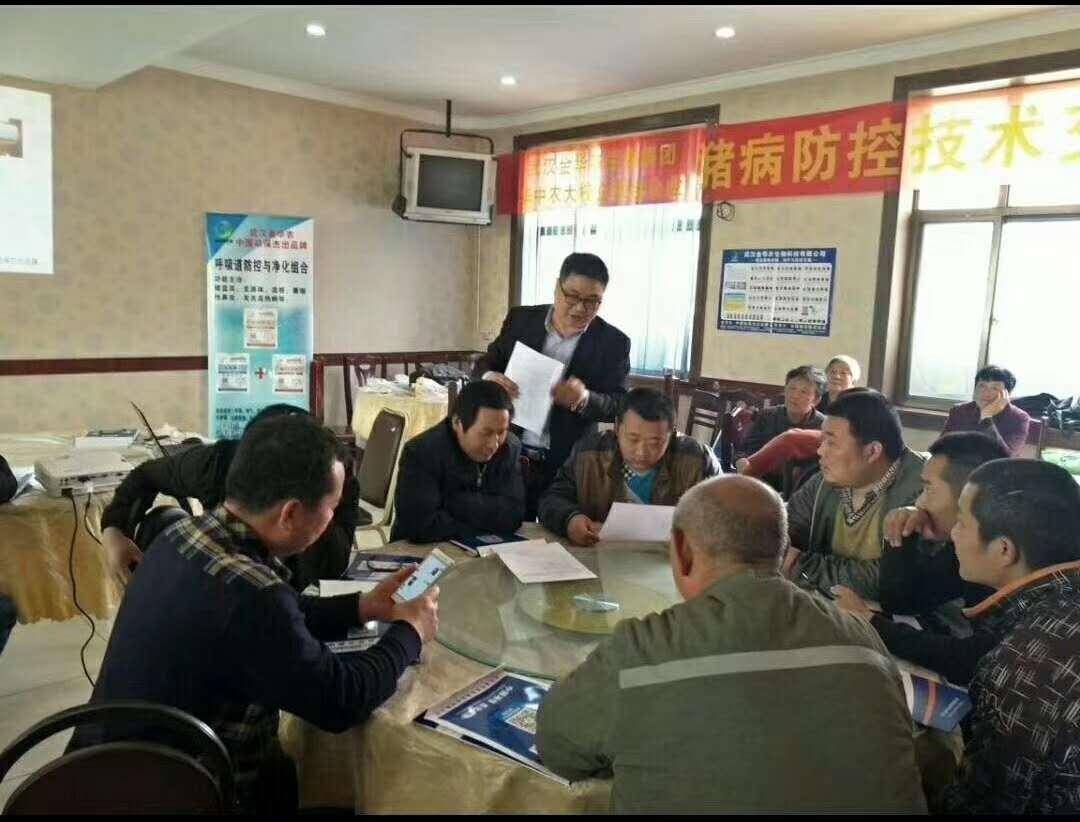 公司運營部郭昌盛老師出席參加會議,技術部吳志良老師主講和技術跟蹤服務,公司河北邢臺大區趙經理負責組織、策劃和宣傳,并負責區域銷售計劃的落實。本次有40家豬場參加會議,會議達到預期目的,豬病知識授課圓滿,養豬戶學習積極認真。