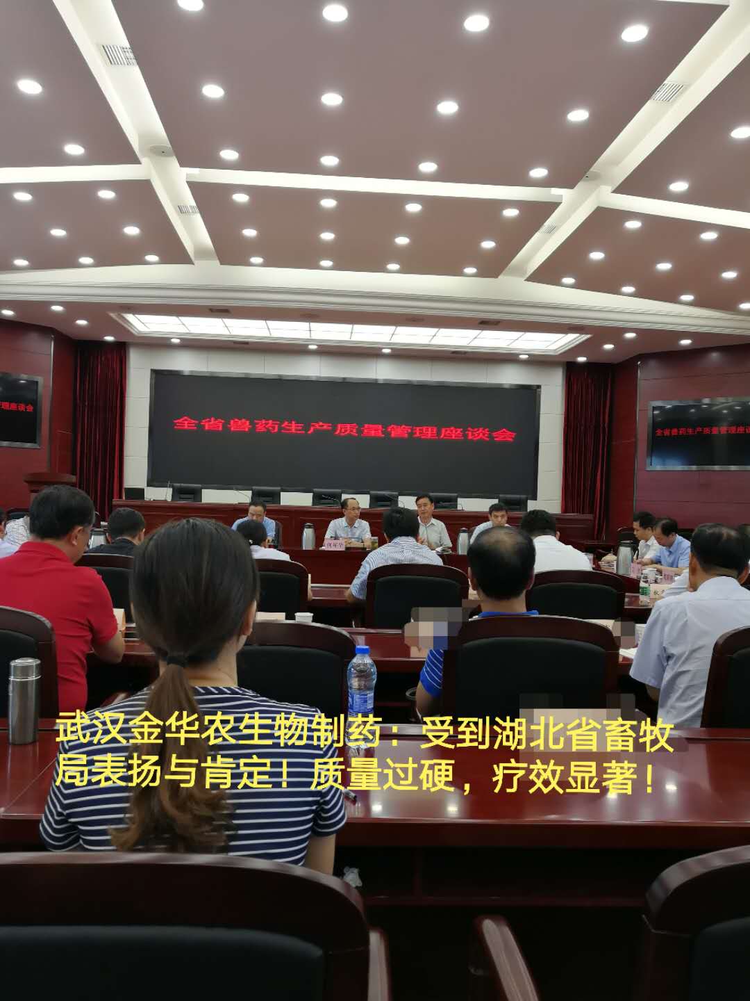 武漢金華農生物科技有限公司出席并參加湖北省獸藥質量安全大會,會議學習黨中央精神,吸取深刻經驗教訓,嚴格杜絕“長春生物疫苗”,防控“非洲豬瘟”事件,會議后,行業主管領導點名表揚“武漢金華農生物獸藥”,質量過硬,工藝先進,科技創新突出!好獸藥,武漢金華農造!!