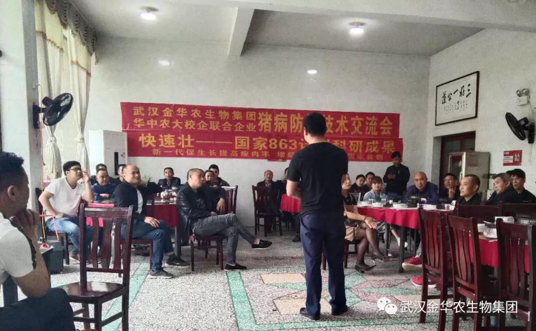 2020年5月15~18日,武漢金華農生物集團“夏季豬病防控技術交流圓桌會”暨“快速壯”“肥豬增重促生長,母豬提免增奶”成果交流在湖南益陽勝利召開,這是公司2020年第一次連續3場豬病防控會議,取得圓滿成功!科技下鄉到村,以養豬示范村為單位,開展豬病防控知識普及,武漢金華農生物開創新模式!來自當地的20位豬場養殖領頭人,與公司技術專家姚教授,趙教授,技術指導原老師,湖南大區負責人張經理,開展了專項座談交流會議。