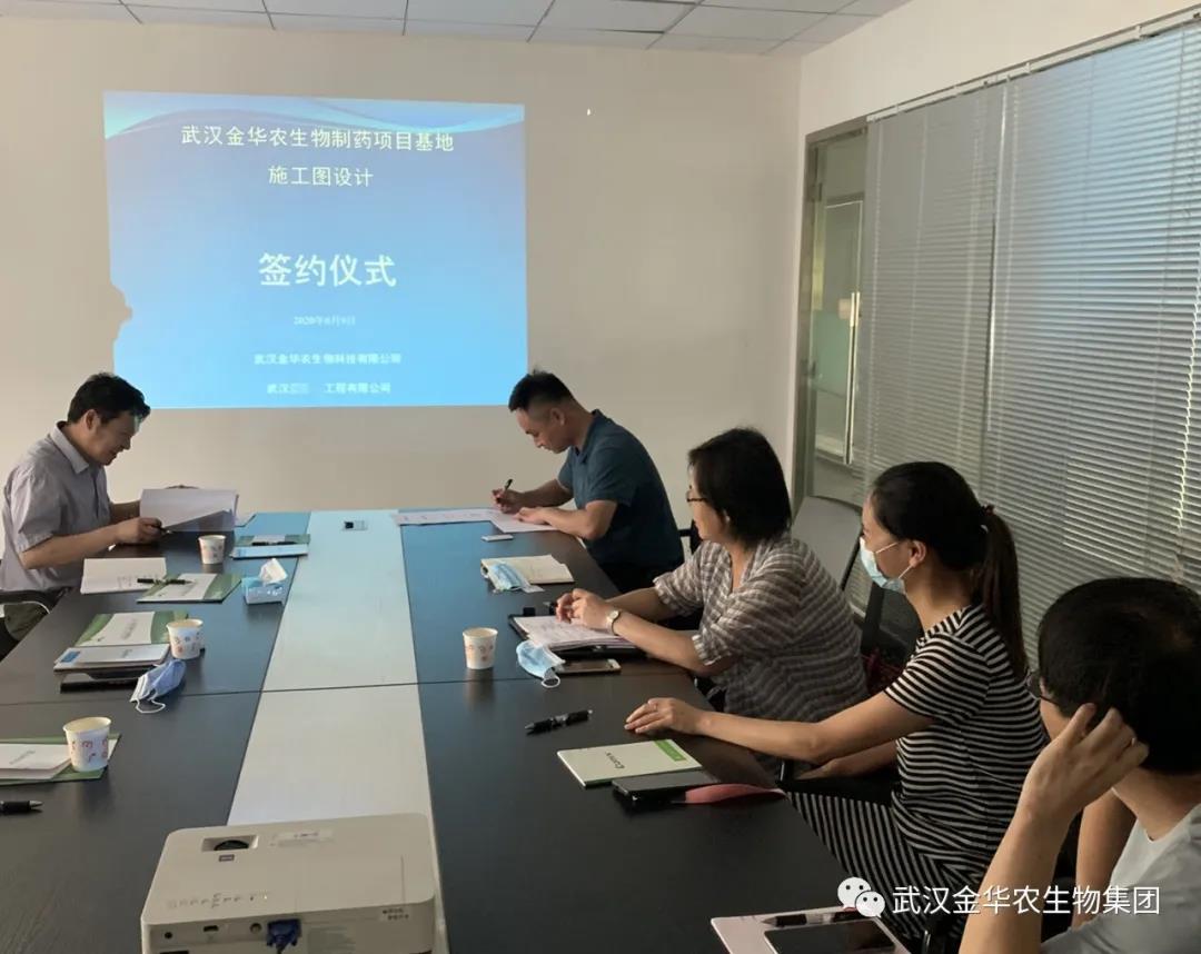 6月9日,武漢金華農(nóng)生物制藥投資3億元新項(xiàng)目基地施工設(shè)計(jì)簽約儀式在光谷生物城舉行。公司項(xiàng)目總監(jiān)黃凡、企劃部經(jīng)理趙方佳、合作方首席設(shè)計(jì)師團(tuán)隊(duì)共同出席此次簽約儀式。